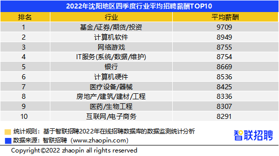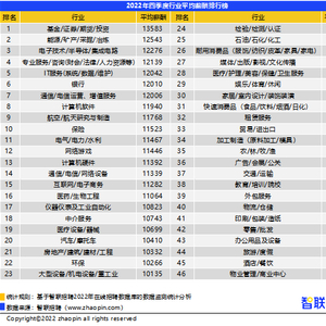 行业方面,四季度金融、IT互联网行业薪酬仍然较高。金融业历来是高薪行业,基金/证券/期货/投资处于榜首,平均招聘月薪13583元,银行(12010元)和保险(11523元)薪酬水平排名相对靠前。高科技产业知识密集,技术密集,研发人员规模占比大,行业薪资待遇总体较高。四季度电子技术/半导体/集成电路(12276元)、IT服务(12042元)、计算机软件(11940元)、计算机硬件(11392元)、通信/电信/网络设备(11339元)等行业在招聘市场上火爆,航空/航天研究与制造、医药/生物工程、仪器仪表及工业自动化等薪酬水平也较高。