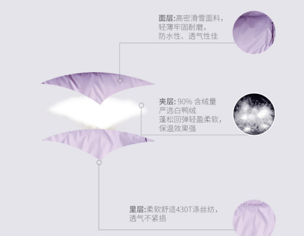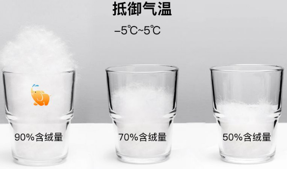 国家对羽绒服的定义里,含绒量在50%以上才能称为羽绒服,市面上没有100%纯羽绒的(因为还没有机器能提取100%的绒朵),稍微好点的基本都在70%以上。