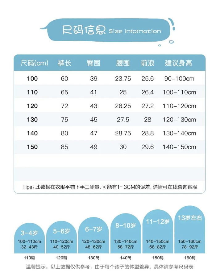尺码100~160码
