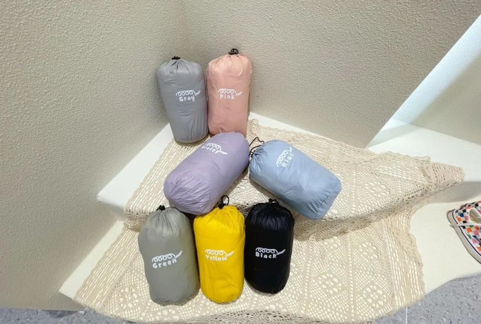 每件还都配有一个收纳袋,收起来小小一个,不占空间,随时穿脱,带着出门旅行也很方便。