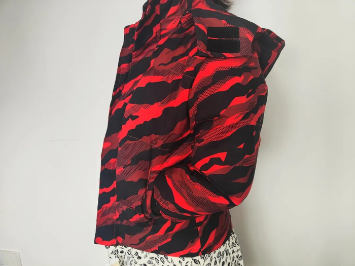 同样采用90鸭绒,保暖性姐妹们放心,经典的迷彩设计时尚又亮眼。