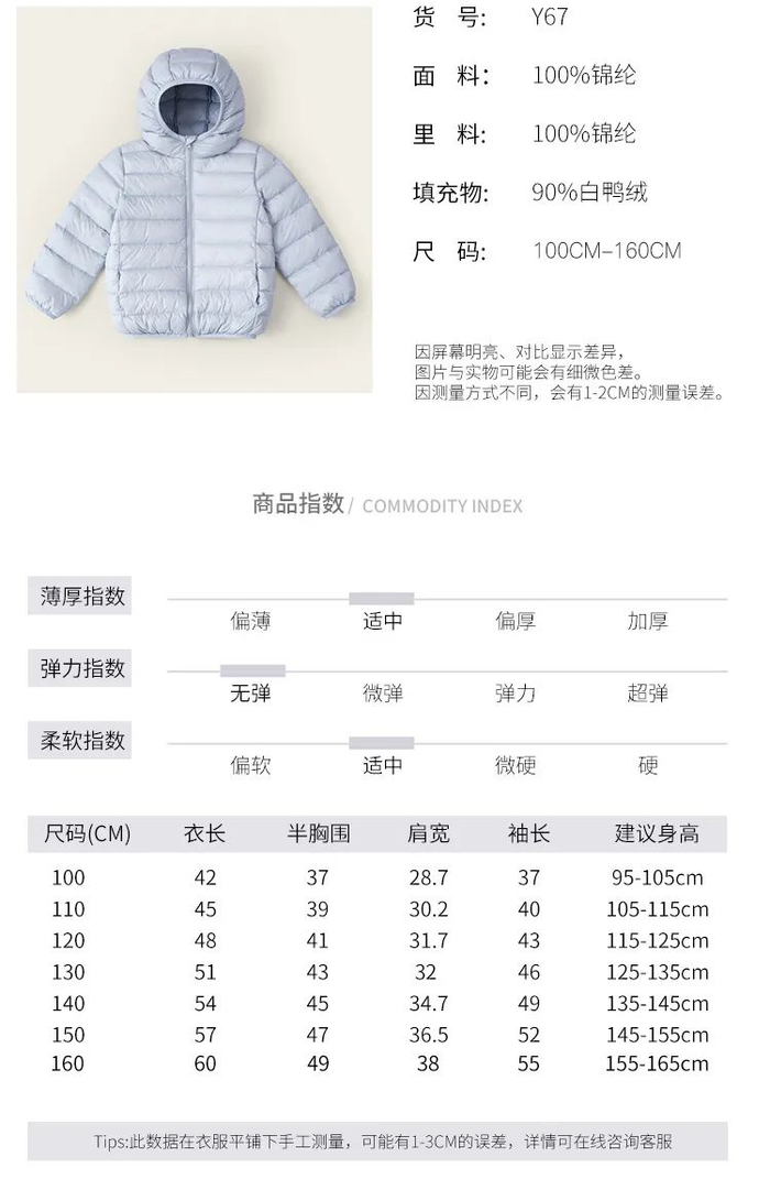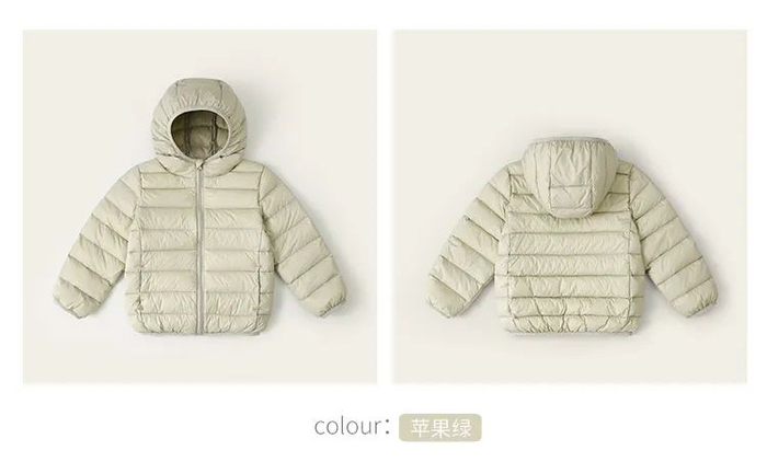 胖胖象这款儿童羽绒服,精心选取90 鸭绒,含绒量90%,轻盈柔软,保温效果MAX。