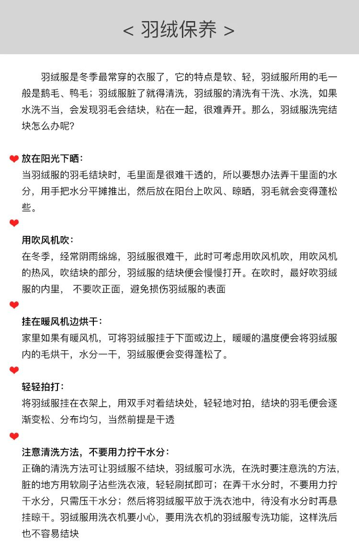 羽绒服保养小常识