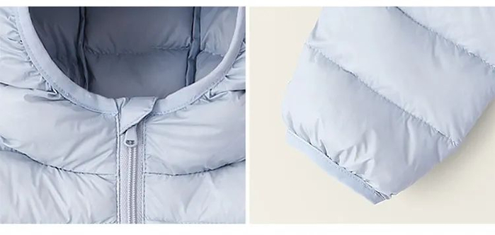 值得夸一夸的是,每件羽绒服配有一个收纳袋,带孩子出去玩的时候一叠、一卷,轻松塞进袋里,秒收纳,超级方便!