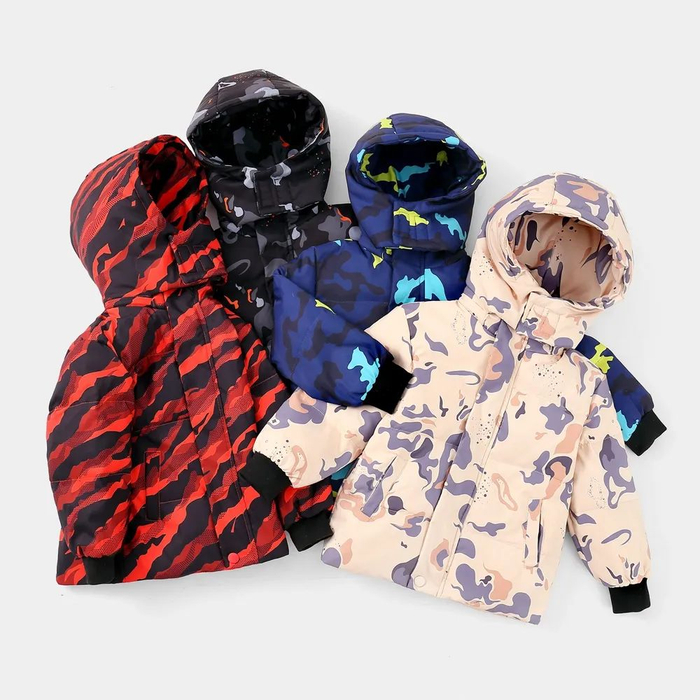 大冬天,当然要穿这样的大连帽印花羽绒服了,帽子一戴,任它外边风吹雪刮都不怕冷。