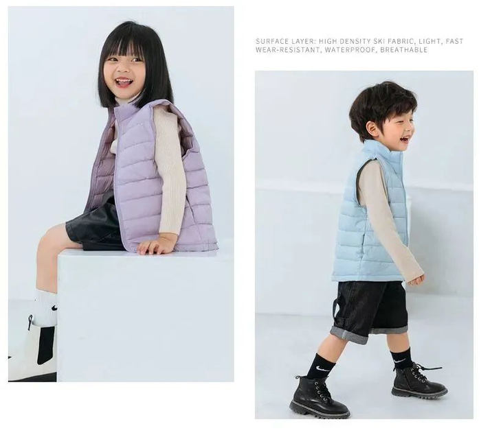 糖果系列的还有一款羽绒马甲,开团价59元!7种颜色可选,尺码是从110-160,深秋或者初冬的时候给里面搭配上厚毛衣、保暖衣就可以穿出门了。而且,叠穿会让穿搭更有层次感,出街秒变时尚娃。