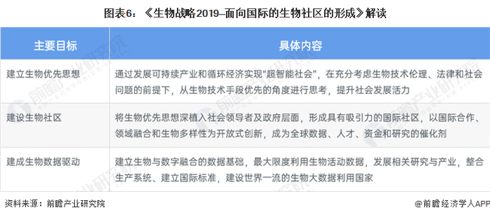 2019年6月,日本政府发布《生物战略2019—面向国际的生物社区的形成》。目标是“到2030年成为世界上最先进的生物经济社会”,并将日本生物产业市场规模增长到92万亿日元。该战略包括三个目标: