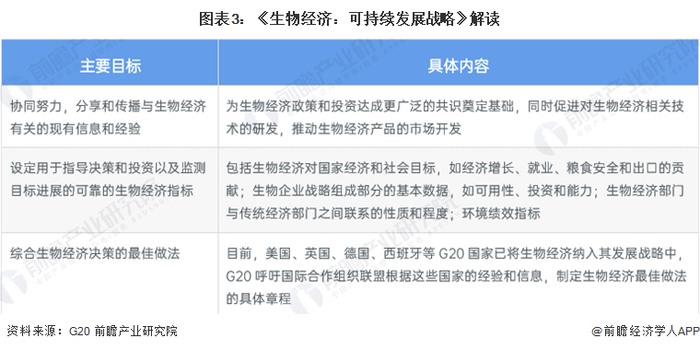二十国集团(G20)于2020年发布《生物经济:可持续发展战略》。G20作为全球经济和政治合作的首要论坛,致力于促进对生物经济目标和战略的共同理解,并提出三个方案: