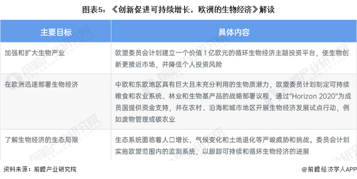 2012年2月,欧盟委员会通过了“创新促进可持续增长,欧洲的生物经济”战略。2018年,欧盟更新了其生物经济战略,提出加快部署可持续的欧洲生物经济;为实现可持续发展目标作出贡献,以及促进实现《巴黎协议》的目标。相关行动计划基于三个关键目标: