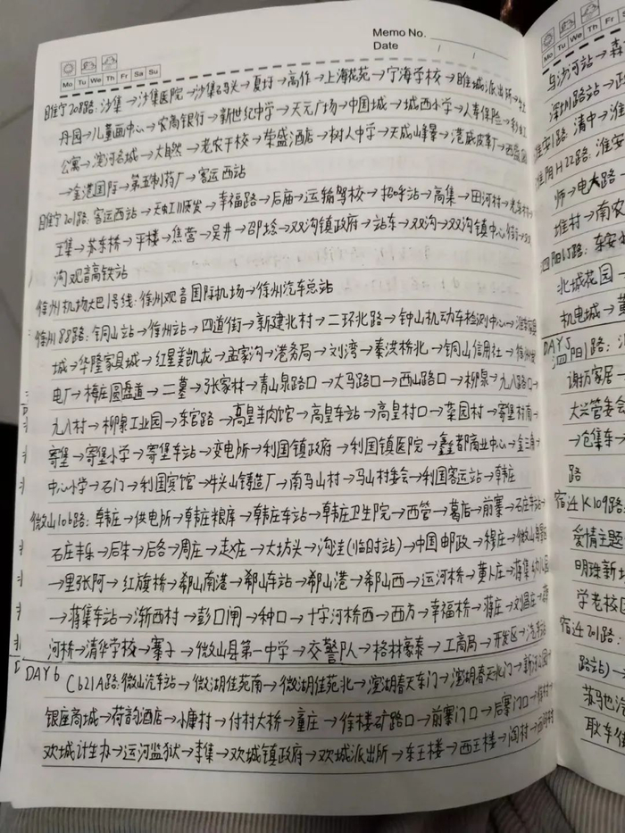 9天时间、走过18个城市途经1000多个公交站坐了80多趟公交车……
