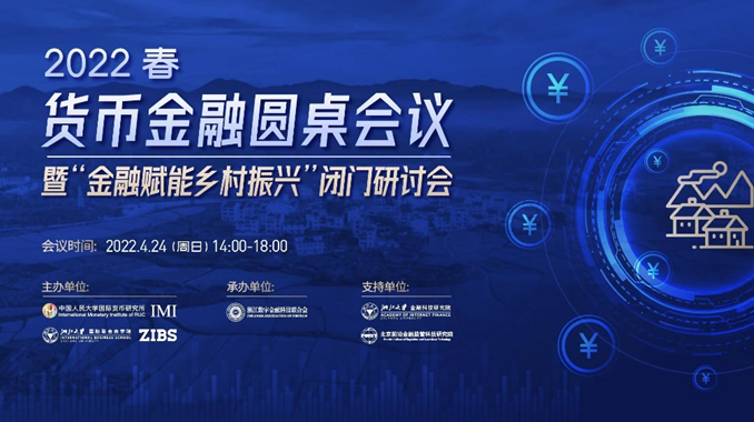 4月24日,货币金融圆桌会议·2022春暨“金融赋能乡村振兴”闭门研讨会在线上成功举行。会议由中国人民大学国际货币研究所(IMI)、浙江大学国际联合商学院(ZIBS)联合主办,浙江数字金融科技联合会(ZAFT)承办,浙江大学金融科技研究院(AIF)、北京前沿金融监管科技研究院(FIRST)协办。会上,全国社会保障基金理事会原副理事长王忠民,财政部金融司巡视员、国有金融资本运营评价中心主任胡学好先后发表主题演讲,探讨了“乡村振兴金融服务的数字化姿态”和农村金融体系等有关问题,为下一步农村金融的发展提供借鉴和参考。