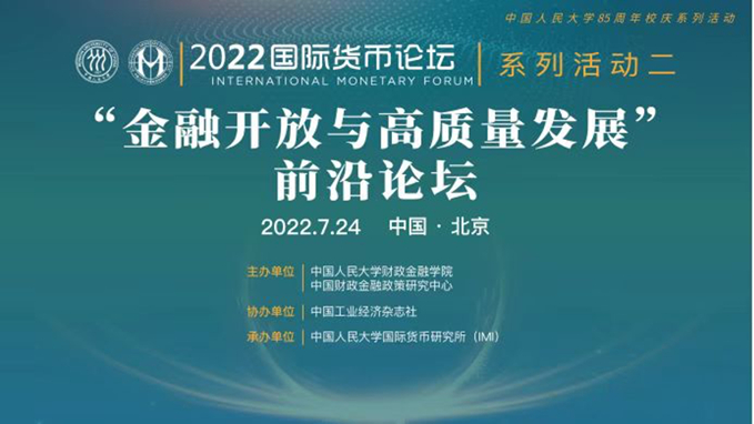 7月24日, 由中国人民大学财政金融学院和中国财政金融政策研究中心主办,中国工业经济杂志社协办,中国人民大学国际货币研究所(IMI)承办的“金融开放与高质量发展”前沿论坛在线上成功举行。本次会议为“2022国际货币论坛”系列活动之二。来自中国人民大学、北京大学、清华大学、中央财经大学、中山大学、中国社会科学院等高等院校和研究机构的三十余位专家学者围绕“国际金融市场与风险防范”、“人民币国际化与跨境资本流动”、“数字金融与高质量发展”、“经济开放与企业投资”四个主题进行了论文宣讲与点评。