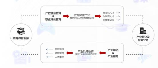 涵盖产教融合教育与职业成长教育,通过“教育赋能产业,产业反哺教育”的一体两翼发展模式,为数字文创产业发展培养和输送标准化、创新型的多元化复合人才。