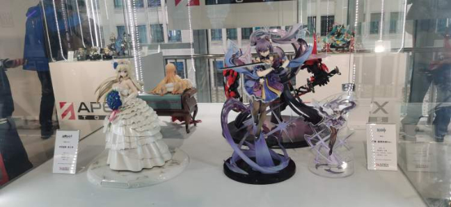 这一区域展示了不少销售火爆或稀缺的手办模型,其中包括时下最火游戏之一原神的手办展览。据该区域负责人表示,这也是全上海唯一有这两个原神手办展示的场所。