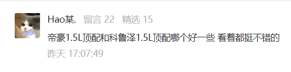 Q3:帝豪1.5L顶配和科鲁泽1.5L顶配怎么选?