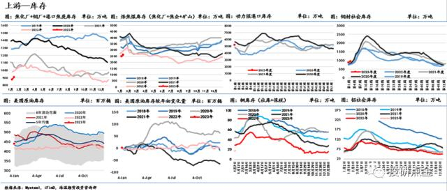 库存变化:黑色品种方面,下游焦钢企对焦煤基本已经结束,但受下游开工回落、季节性累库影响,下游焦钢企业焦煤库存继续上升,煤矿焦煤库存小幅下滑;焦炭方面,焦企的焦炭库存开始回升,钢厂焦炭继续累库,焦炭总库存连续三周回升;铁矿方面,进口矿港库周环比增加,钢厂进口矿库存连续8周上行,库消比亦小幅增加,但厂库仍远低于去年同期水平;成材方面,螺纹钢和热卷库存维持社库增幅远超厂库的特点,社会库存在同期高位继续加速积累,仅热卷厂库周环比下降;动力煤方面,北方港动力煤库存向上累积。电厂日耗并未有明显上升,目前库存安全,整体以刚需备货为主。有色金属品种,铜方面,本周全球三大交易所铜总库存环比增加1.88万吨至21.65万吨,国内主流地区铜社会库存较上周增加1.8万吨至13.55万吨,保税区库存较上周增加1.33万吨至7.08万吨。铝方面,本周SHFE和LME库存延续分化,国内铝锭社会库存较上周增加6.6万吨至64.2万吨,季节性累库延续。能源方面,1月6日当周EIA原油库存超预期大幅增加1896.1万桶,为2021年2月6日当周以来最大增幅,成品油方面汽油库存上升,馏分油库存下降。