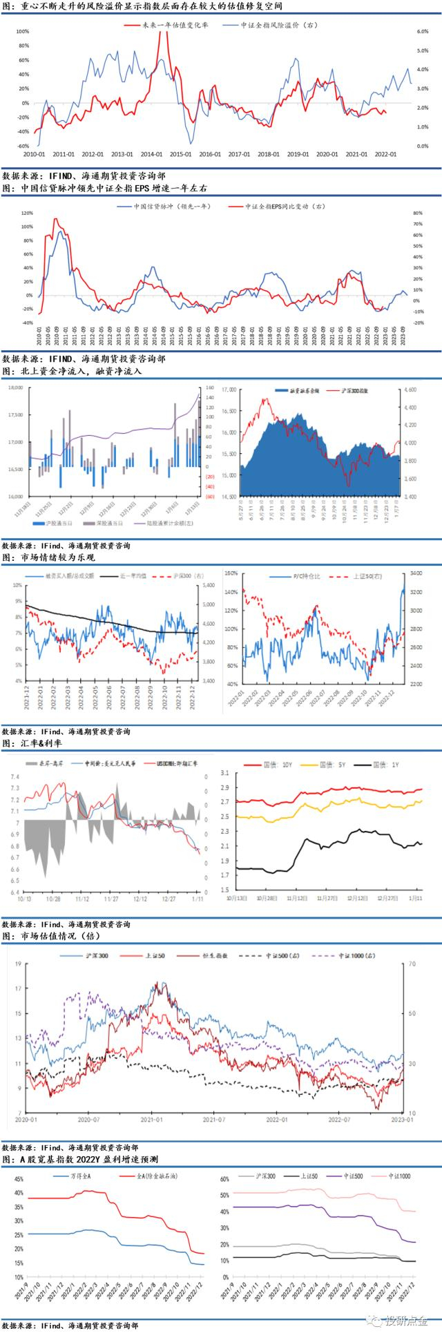 全年来看,保持乐观。我们认为中证全指在2023年估值将提升14%左右,EPS将同比增长7.1%左右,故我们预测上证全指的全年涨幅或在22.1%左右,所以整体观点上是乐观的。“解铃还须系铃人”, 疫情打击的是信心对经济的深层影响是“宽货币”的失效。防疫政策的优化是经济和市场信心恢复的根本,当前市场已经具备走牛的基础。