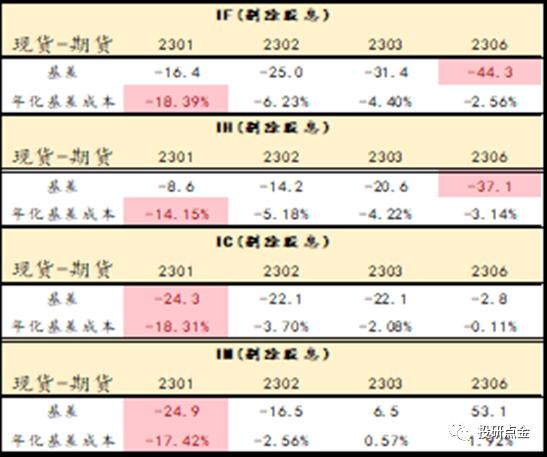 各品种近月合约大幅升水,IF和IH保持升水结构,IC远月合约小幅升水,IM远月合约小幅贴水。由于下周就是股指期货的交割周2301合约较高的升水是较好的期现套利的机会,可考虑空股指期货2301合约多指数ETF的套利。