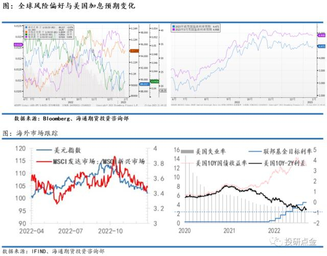 从分项结构角度来看,本次CPI数据并不算理想。本次CPI环比为负值最主要还是受能源价格大幅下行的影响,反观核心CPI环比数据却仍在继续走高。从整个一季度角度来看,美国经济和就业还是有一定的韧性。另外原油价格近期有一定反弹,而由能源价格回落带来的通胀数据继续大幅走弱概率还是比较低的,因为通胀自身在核心服务项里还是存在比较强的韧性,所以一季度来仍要警惕市场风险偏好回落的风险。