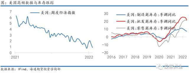 从实体经济层面看美国库存周期高位回落,随着金融条件收紧后总需求回落,库存周期已经进入去库阶段,对于经济将会产生下行压力。全球制造业PMI和美国ISM制造业PMI持续回落。