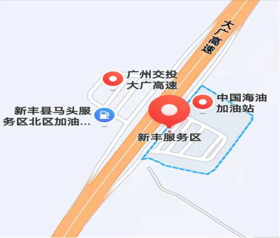 1.大广高速(韶关市新丰县路段):3262km-3279km路段为大广高速、武深高速公路并线路段,车流量大,大广高速新丰服务区属于繁忙服务区。北行车辆可在新丰站(或地派站)下高速,绕行105国道,至隆街站重新返回高速行驶。