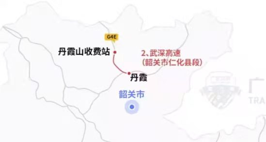 1.武深高速(韶关市仁化段):往南行方向,在恩村收费站出口,行驶106国道,至武深高速丹霞山收费站上高速行驶。