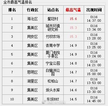 厦门最高温为15.6℃
