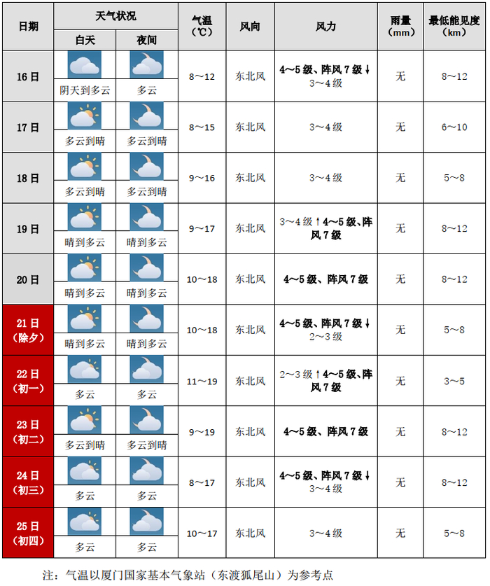 霜冻预警!9级大风!厦门未来10天天气出炉……