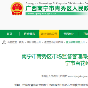 南宁市青秀区市场监督管理局关于不合格食品核查处置情况的通告(南宁市百花岭路小学采购的老姜)