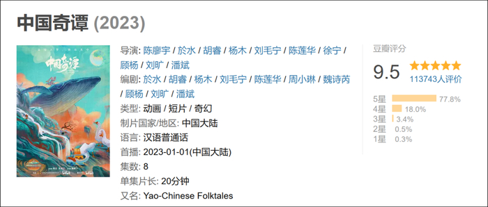 1月1日,一部名为《中国奇谭》的动画短片集开播。随后,豆瓣开分9.5,B站打分9.9,两集口碑直接“封神”。