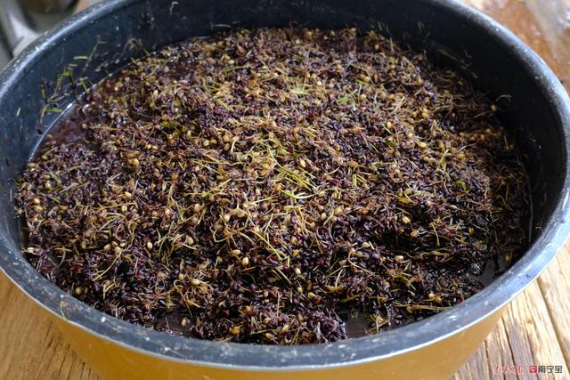 把前一天发酵的黑米麦芽压出糖水