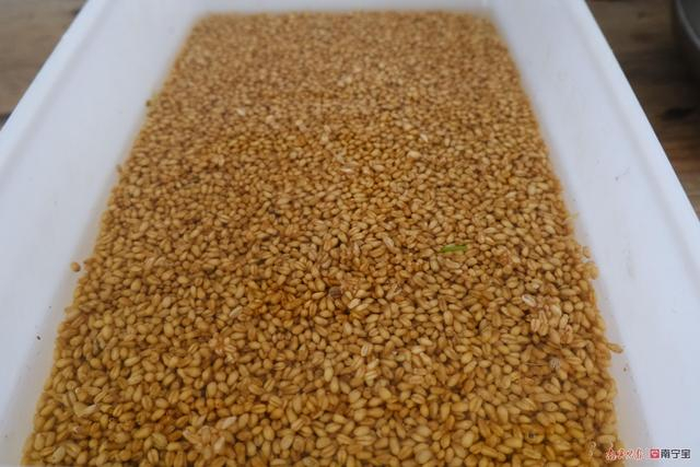 鄢小刚说,把小麦放进专门用于催芽的房间后,就不用再管理,只待120小时后小麦发芽到两三寸高,即可制作麦芽糖了。“中国的劳动人民真的很聪明,很多东西就是在无意中发明了,麦芽糖就是其中之一。相传,麦芽糖的生产始于殷商时期,初名‘饴’,这也是为什么麦芽糖也叫饴糖的原因。”