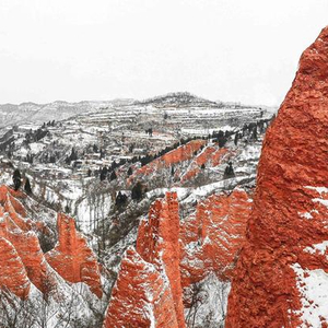 人民网郑州1月16日电(常力元、侯琳琳)1月15日,雪后初晴,在河南省三门峡市卢氏县文峪乡庙沟村红石谷景区,奇峰林立的红色砂岩,在瑞雪的点缀下,美不胜收,宛若画屏。据了解,红石谷景观在地理学上称丹霞地貌,形成于一亿七千万年前的侏罗纪时代。在差异风化、重力崩塌、流水侵蚀、风蚀等综合作用下,形成的险奇峻秀靓丽壮观。