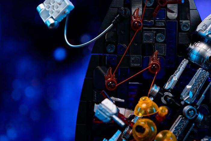 所以布鲁可以丰富透明积木件,巧妙呈现爆炸效果,包括四面飞溅的战舰碎片,还原太空战役中的惊心一刻。