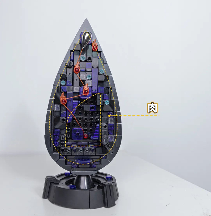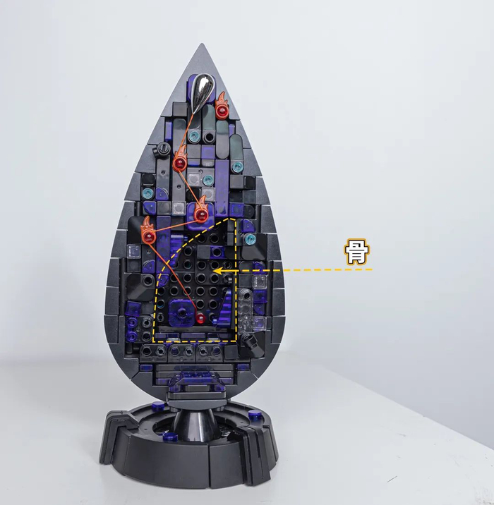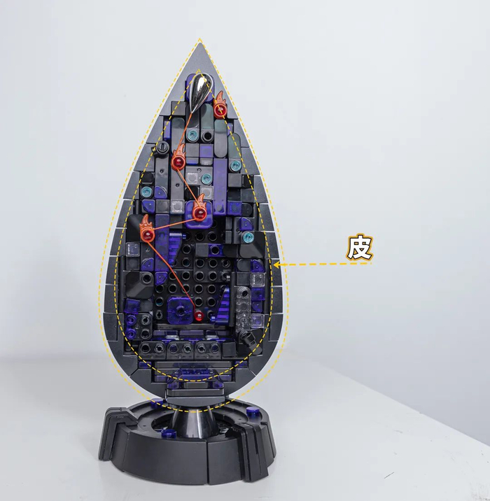 骨:以标准积木,标准接口拼搭出水滴内部骨架模拟水滴内部结构。