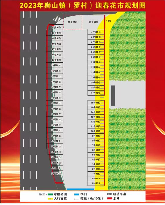 交警部门视场地实际情况,对人民西路金石中学红绿灯位至博爱湖段实施交通管制,松岗沿江北路行政服务中心对出路段禁止机动车进入花市销售范围过往车辆请提前绕道行驶。