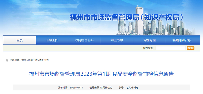 中国质量新闻网讯 近日,福州市市场监督管理局发布2023年第1期食品安全监督抽检信息。本期抽检饮料14批次,全部合格。