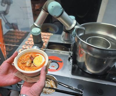 新加坡机器人工程师研制出的机器人厨师可以用45秒做出一碗热腾腾的特色小吃。罗斯兰·拉赫曼摄(影像中国)