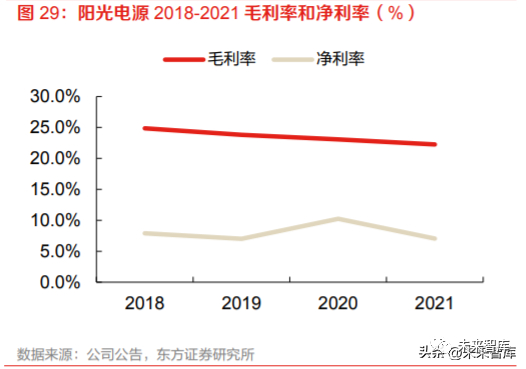 阳光电源 2021 年公司营业收入 241.4 亿元(yoy+25.2%),归母净利润 15.8 亿元。2021 年公司 整体毛利率 22.25%,净利率为 7.06%。2021 年营收占比最大的业务为电站投资开发和光伏逆变 器等电力转换设备,分别占 40.1%和 37.5%,储能系统占比 13%,营业收入同比增长 168.5%。