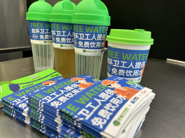 “每天有数十人喝水,绝大部分是外卖小哥,少数是环卫工人,他们一般都会拿着水杯来接。”柠季品牌相关负责人表示,“环卫工人消息可能没那么灵通,我们就想找到一个他们容易接触到的信息渠道,于是便在柠檬茶的杯托做文章,印上‘免费喝水’的文字,就想告诉他们,天冷了,进来喝杯热水吧。”