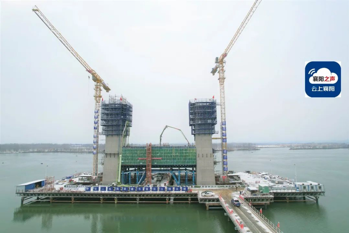 1月15日晚,由中交二航局承建的襄阳207国道改建项目牛首汉江特大桥主墩下横梁第二层浇筑完工,标志着大桥主塔下横梁全部浇筑完成。