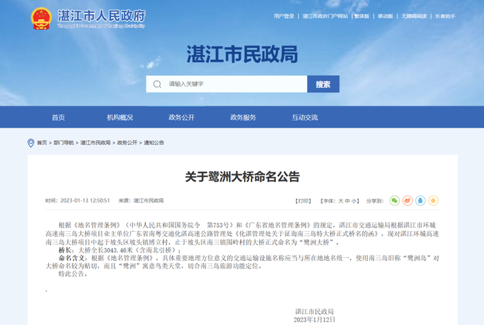定了!湛江环城高速南三岛大桥命名为鹭洲大桥,寓意鸟类天堂