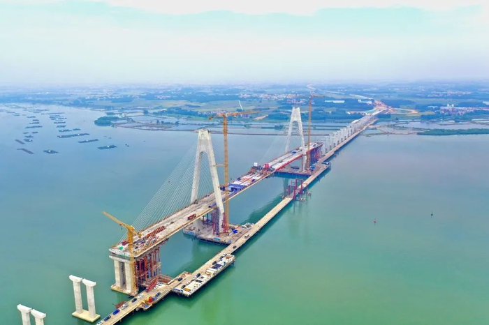 湛江环城高速南三岛大桥项目是广东省交通项目中的重点工程,全线为一条长约16公里的高速公路,其中大桥部分长3043.46米,已于2022年10月实现合龙。