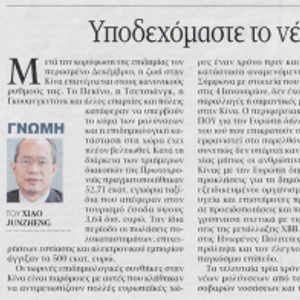 驻希腊大使肖军正就中国优化调整防疫政策在希《消息报》发表署名文章