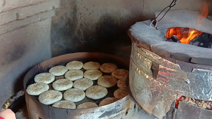 三座店镇的烧饼在宁城县名声响当当,一个传统吊炉摊位前,炉子里火苗通红,老板娘嗓门嘹亮。芝麻烧饼正热腾腾地出锅,摊位前的队伍越排越紧。人气、火炉的热气,再加上烧饼隔着手套也能传到手上的温度,如愿买到烧饼的人呵着气小口吃,个个脸上心满意足。炉子另一侧的老板娘巴英杰撸着袖子,脸上微微有汗。
