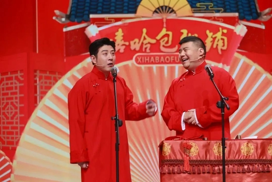 “在河北,过年就喝衡水老白干!”来自河北的喜剧明星高晓攀及其“北京嘻哈包袱铺”团队演员在诙谐幽默的相声表演中,向大家倾情推荐更健康的高端白酒衡水老白干。