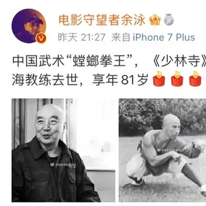 1月17日凌晨,吴京在微博发文悼念于海:“惊悉于海老师逝世,不胜悲痛。《功夫小子闯情关》《太极宗师》《新少林寺》《少林武王》……仿佛还历历在目,于海老师一路走好”。