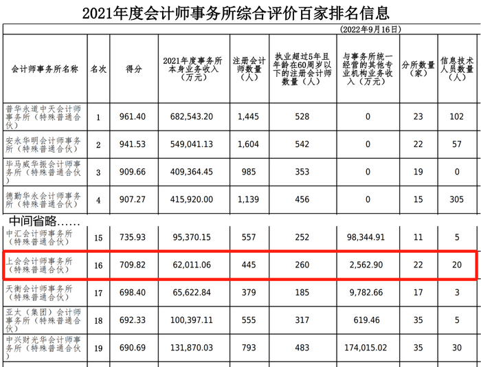 看了下注会协会去年出的一份排名,上会会计排在第16位,而普华永道排在第一。