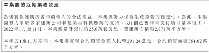 关于地产销售情况,在恒大最新的季度信息更新中提到,2022年前11月,恒大的房子,卖了291.24亿。