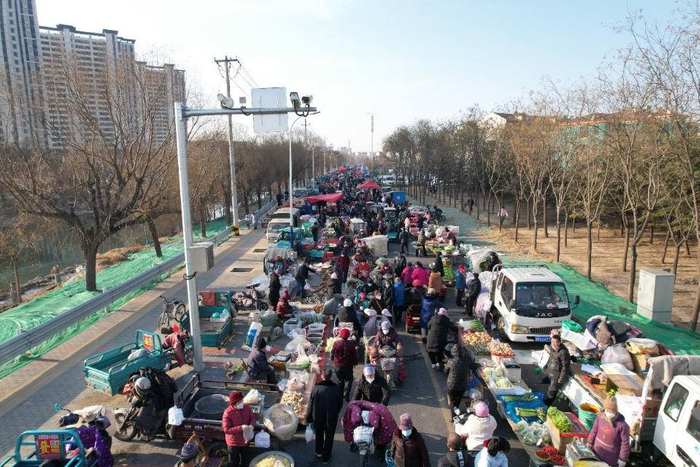 1月10日,农历腊月十九,正值“四九”桓台索镇大集。索镇大集从渔阳街沿着沿河路向北,直到索镇大街路段都热闹非凡,尤其是以镇南大街两侧为甚。